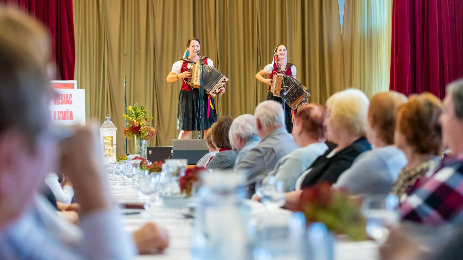 Hudobným hosťom podujatia boli známe a úspešné heligonkárky, sestry Bacmaňákové z Oščadnice, ktoré svojim spevom a hrou na heligónke potešili všetkých seniorov.